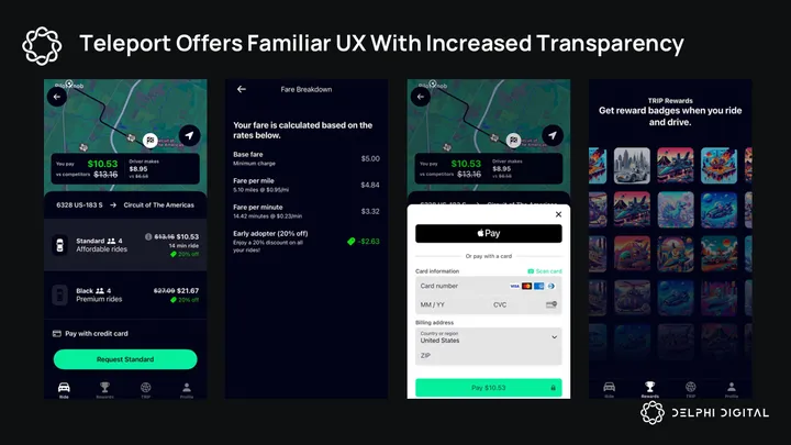 Teleport replaces bloated Web2 intermediaries with a decentralized marketplace called the TRIP ride-share protocol. TRIP is built on Solana and is available on the iOS app store.