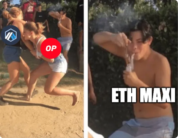 The main characters in this story are Arbitrum and Optimism. Combined, they account for over 80% of the total value locked across all L2s. After launching in 2021, both L2s experienced a dramatic rise in adoption â driven by the lethal combination of faster speeds, lower fees, and Ethereumâs ironclad security.