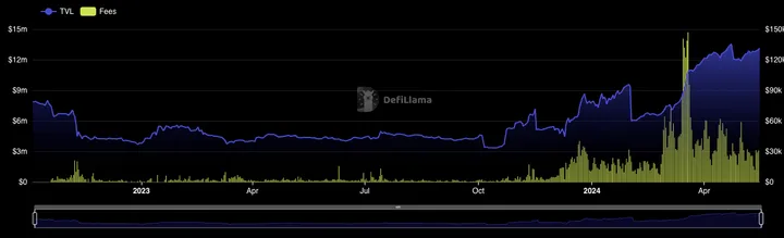 This superior performance is reflected at a protocol level, with annualized fee revenues standing at ~$11.78m for a TVL of $13.13m (source and more charts on DefiLlama)