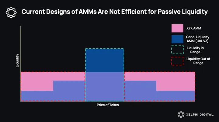 Similar to PCL and CPMM designs, some new AMM designs enable LPs to provide liquidity passively, but with added features like hyper-concentration of liquidity and orderbook integrations. Naturally, architecturally and mechanically, these designs are very different from the AMMs that are currently ubiquitous.