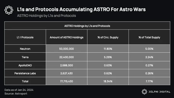 Ahead of the vxASTRO launch, several L1s and protocols have strategically accumulated ASTRO tokens, positioning themselves for participation in the upcoming ASTRO wars. Key accumulators include: