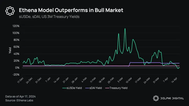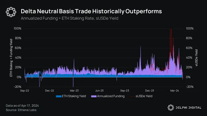 Secondly, USDe is able to harness the two highest yielding sources of crypto-native yield: