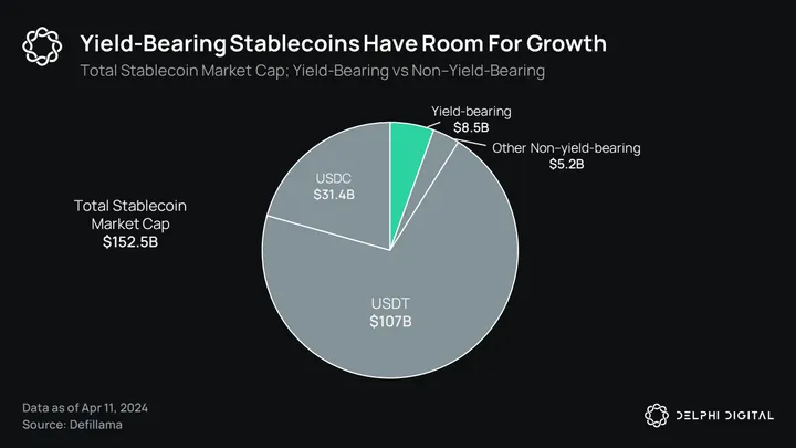 Consequently, the market’s demand for a sufficiently liquid yield-bearing stablecoin remains unmet. With yield-bearing stablecoins representing just 5.6% of the total stablecoin market cap today, it is evident that the existing models are not sufficient.