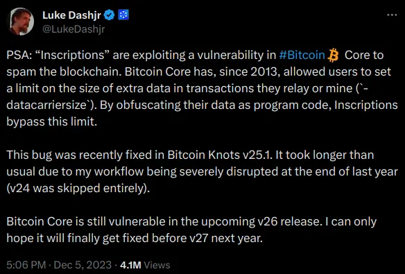 Ordinals a bug? Luke Dahjr thinks so.