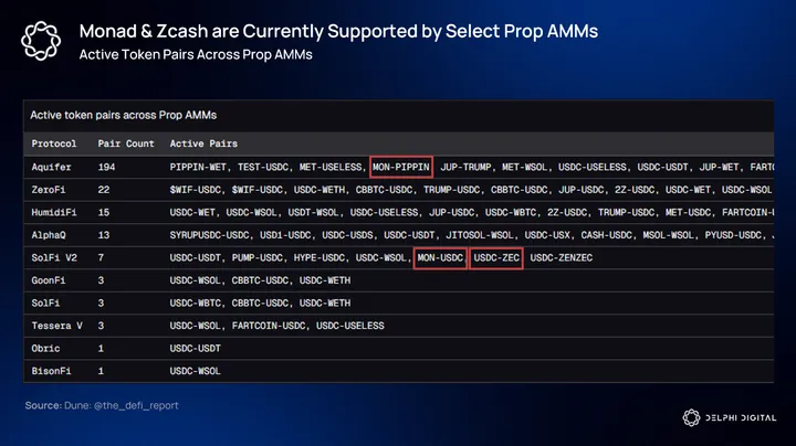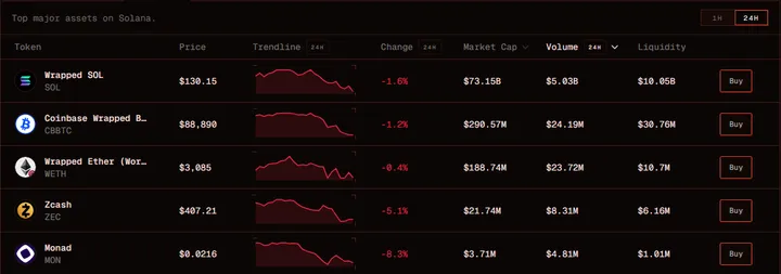 Monad and Zcash are currently the two most traded majors on Solana after SOL, wrapped BTC, and wrapped ETH.