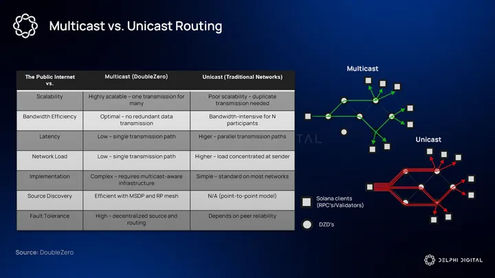 DoubleZero introduces something called multicast. Multicast is the most efficient method for sending identical data to a large group of recipients, because packets are replicated inside the network instead of being duplicated by individual senders.