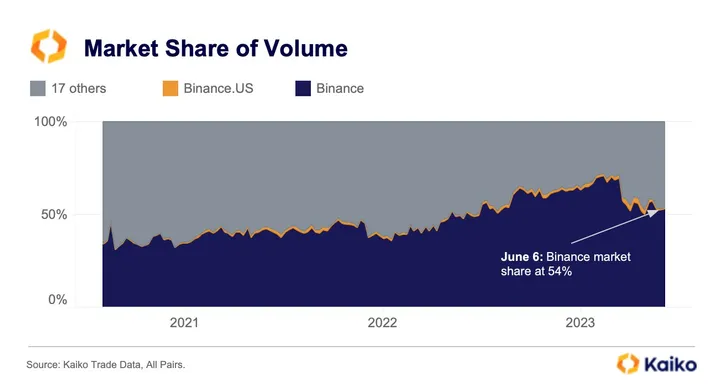 Currently, Binance holds 54% of crypto trading volume and is located off-shore. This will be a very interesting metric to watch as new players make their way into the market.