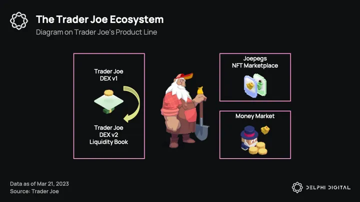 When it was launched, Trader Joe was a Uniswap v2 fork on Avalanche. Since then, they have focused on diversifying their product stack to cater to the various needs of a crypto user. Today, Trader Joe is a DEX, money market, and NFT marketplace across a number of chains.