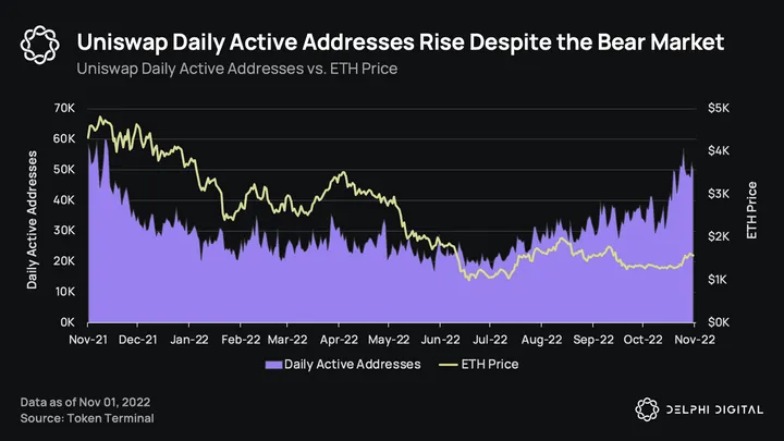 š Uniswap Daily Active Addresses Rise Despite the Bear Market