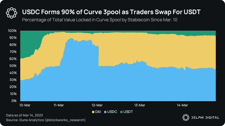 Nearly all of the liquidity in the USDC-USDT liquidity pool on Uniswap v3 was also drained. Most of the damage was relatively contained for Uniswap, who also recorded the highest daily volume in its history at $11.8B on Saturday.