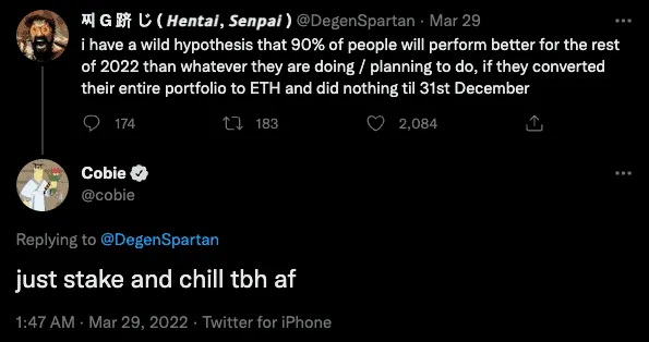 Not to mention crypto-native unique innovations such as liquid staking tokens (e.g., stETH) let you have your cake and eat it too – liquidity, yield, and the ability to stack money legos on top.