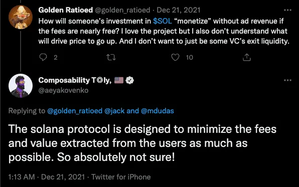 Solana’s objective is not to drive native token value. The stated value of SOL is simply the net present value of discounted future MEV cashflows.