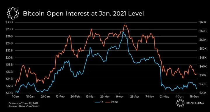 - Bitcoin futures open interest is back at the same level it was at in Jan. 2021 — and so its price.