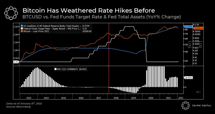- History suggests it isn’t rate hikes that adversely impact BTC as much as tighter liquidity conditions and heightened market volatility associated with strong risk-off sentiment.