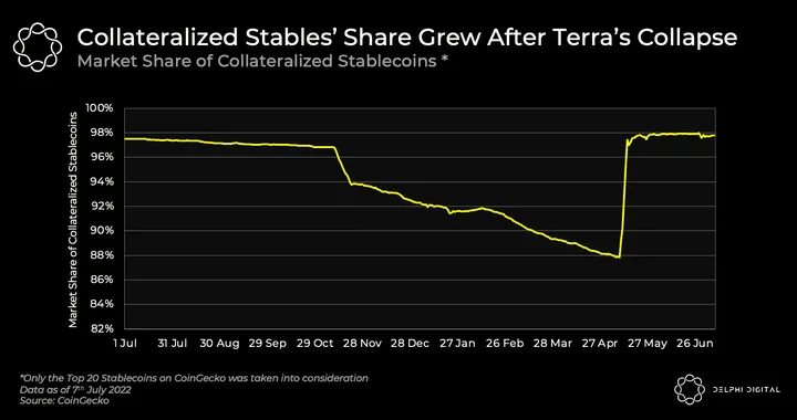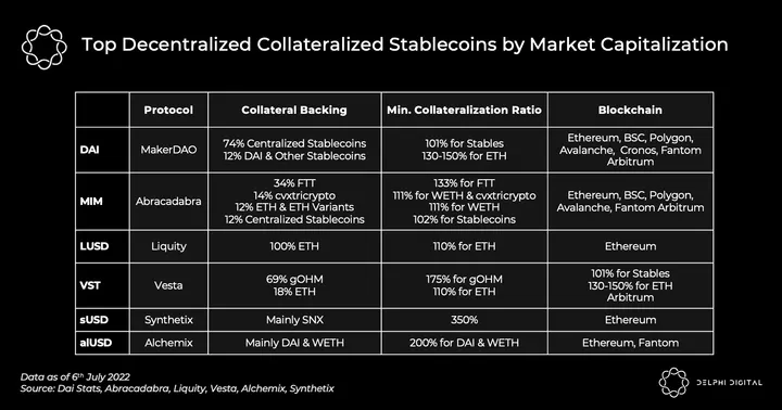 From a capital efficiency perspective, centralized stablecoins are the clear winner as they are typically backed 1:1 by the equivalent value of the backed asset. On the other hand, virtually all decentralized stablecoins that have weathered the storm are over-collateralized.