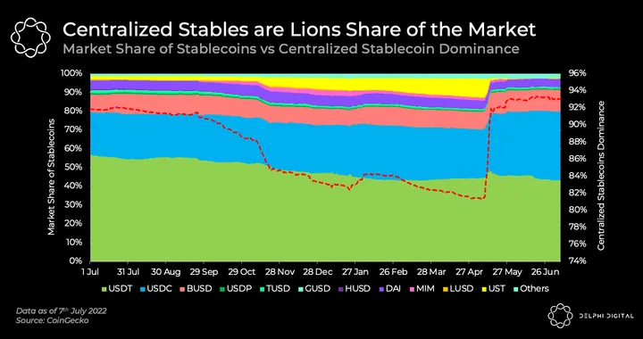 Stablecoins are undoubtedly a crucial and potent component of crypto infrastructure, as the de facto medium of exchange for crypto assets and “legitimizer” of chains in the event of forks. Having that much power concentrated in centralized entities susceptible to regulation and censorship is a significant risk for the entire crypto ecosystem.