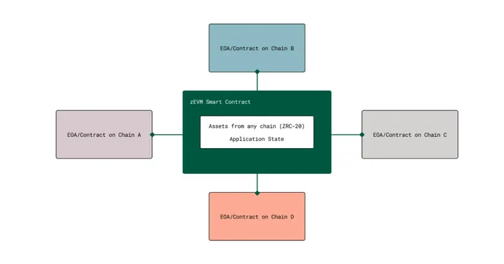 ZetaChain’s omnichain smart contracts are enabled by the TSS protocol. Since Zeta validators run full nodes and share signing on external chains, they can custody assets on behalf of ZetaChain and its users. The zEVM can then manipulate these assets as they desire. To be clear, the BTC does not actually move from Bitcoin to Zeta, the BTC is moved to an address that the Zeta validators custody, and then is represented on ZetaChain. This would be as if THORChain had smart contracts on top of the BTC the protocol custodies.