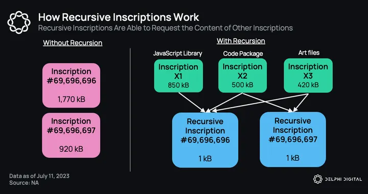 In our Delphi Pro report titled “The Huge Cultural Opportunity for Ordinals”, our team noted the salient features recursion brings to Ordinals: