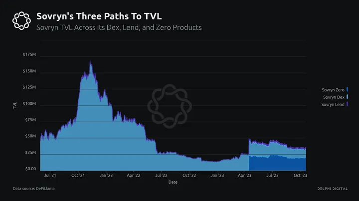 Sovryn accounts for close to $50M in TVL. Like Money on Chain, Sovryn aims to do a lot. There is a DEX, a lending product, and Sovryn Zero. SOV is their governance token.