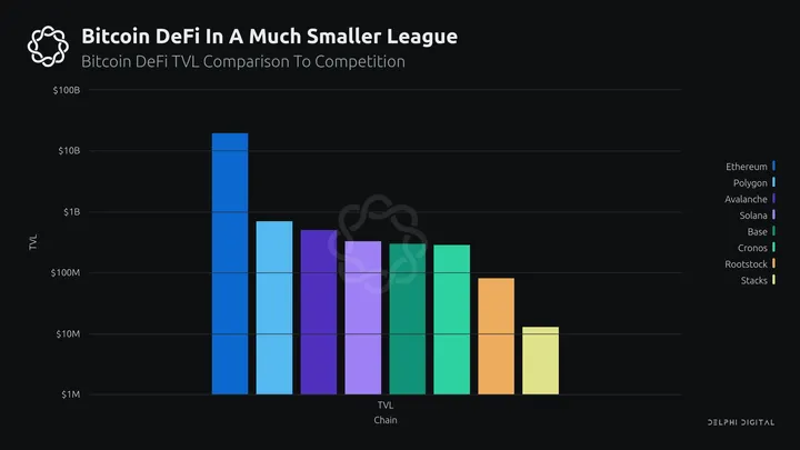 Bitcoin-focused DeFi is tiny compared to most ecosystems – let alone Ethereum. THORChain alone is larger than Stacks and RSK combined at $130M TVL. Ethereums TVL sits near $20B, Solana at around $330M, Polygon at $700M, and even the much younger Base at $301M. Despite projects like Stacks and RSK plugging into the most well-known chain in crypto, together, they barely account for $100M in assets. Their lack of adoption begs the question: why aren’t Bitcoiners using them, and what lessons can we learn from their struggles?