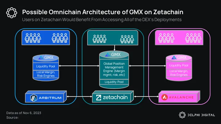 Hypothetically, if a GMX hub was deployed on Zetachain with spokes on Avalanche and Arbitrum, it would be relatively simple to work in cross-chain swaps and margin trades.