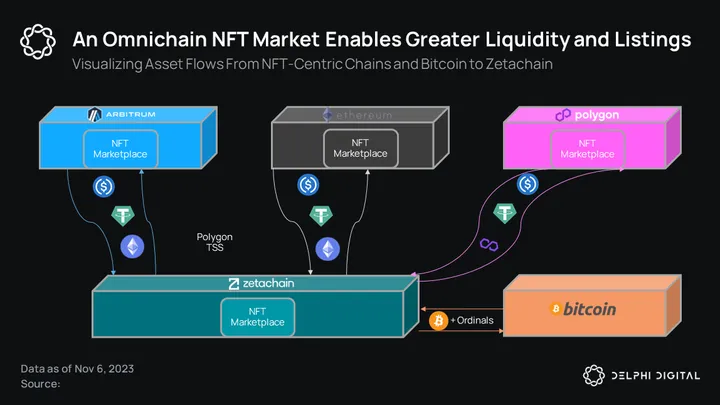 In essence, since Zetachain can enable users to bridge over their ETH and stablecoins as well as BTC and Ordinals, there’s an opportunity to create a more liquidity-dense marketplace for Ordinals that isn’t limited to just BTC.