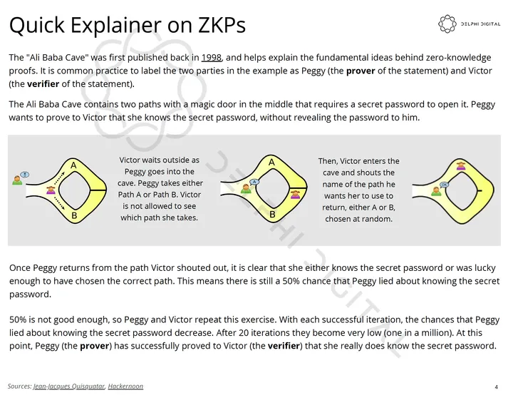 To answer this question we can refer back to an old Delphi report from 2019. If you still don’t understand then this is a great video too (23m), explaining ZKPs to 5 different knowledge levels.