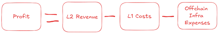Typically, the sequencer is also used to capture MEV, which generates additional revenue but can drastically increase transaction costs for users. As a result, MEV extraction is hostile to users in most cases. Unlike many other rollup sequencers, the ZKsync sequencer does not capture any MEV, forfeiting a significant revenue stream in favor of providing a much better user experience. Since running off-chain computation of transactions incurs infrastructure costs, the complete profit equation looks like this:
