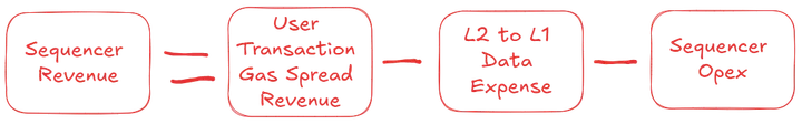 The L2 revenue, or L2 transaction fee, includes the sequencer revenue and is calculated as follows: