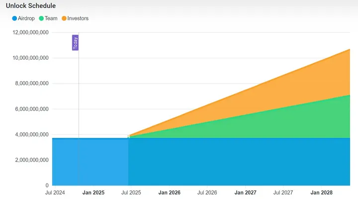 Of the ⅓ allocated to investors and team members, 16.1% were distributed to the Matter Labs team, and 17.2% were dispersed to investors. Both allocations are subject to a 4 year unlock period (June 2024 – June 2028) with a one year cliff. Meaning, June 2025, 3.66% of the total supply will unlock from the team and investor distribution. Afterwards, the token allocations are vested monthly until June 2028, with a maximum monthly unlock of 0.82% of total supply.