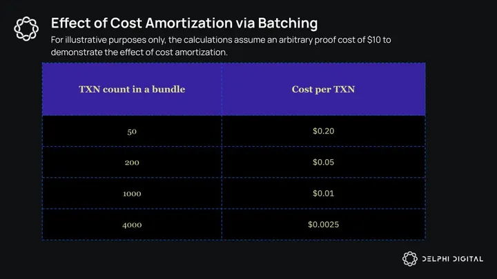 That’s because ZKsync pays proofing costs per ZK proof submitted to Ethereum. Since each ZK proof validates one bundle of transactions, the verification costs per transaction goes down the more transactions are included in a bundle, achieving efficient economies of scale – often referred to as amortization of costs.