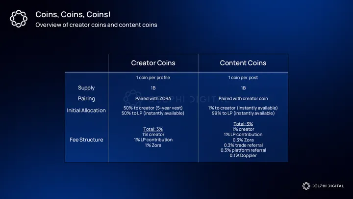 Zora is Instagram and money. The core idea is that every piece of content can be minted as a token, giving it a market value. Zora’s introduces two types of ERC-20 tokens: creator coins (one per user profile) and content coins (one per post). These are called Zora coins. All posts are tokenized by default.