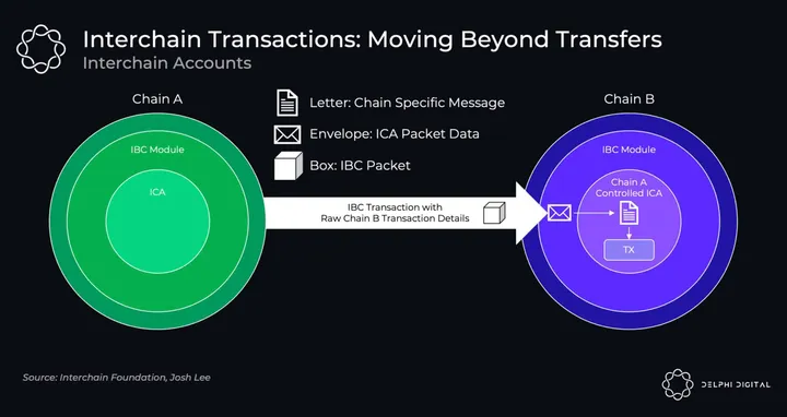The analogy frequently used is that an Interchain Account transaction is a letter inside an envelope inside a box.