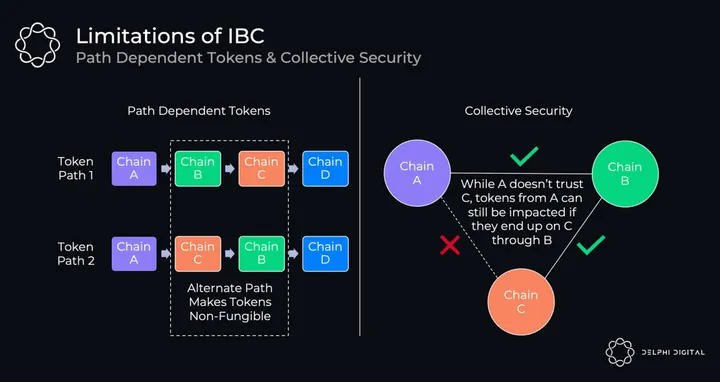 IBC has a few limitations, namely that tokens are “path dependent”, and thus IBC is likely to adopt a hub & spoke model around major “Hubs”